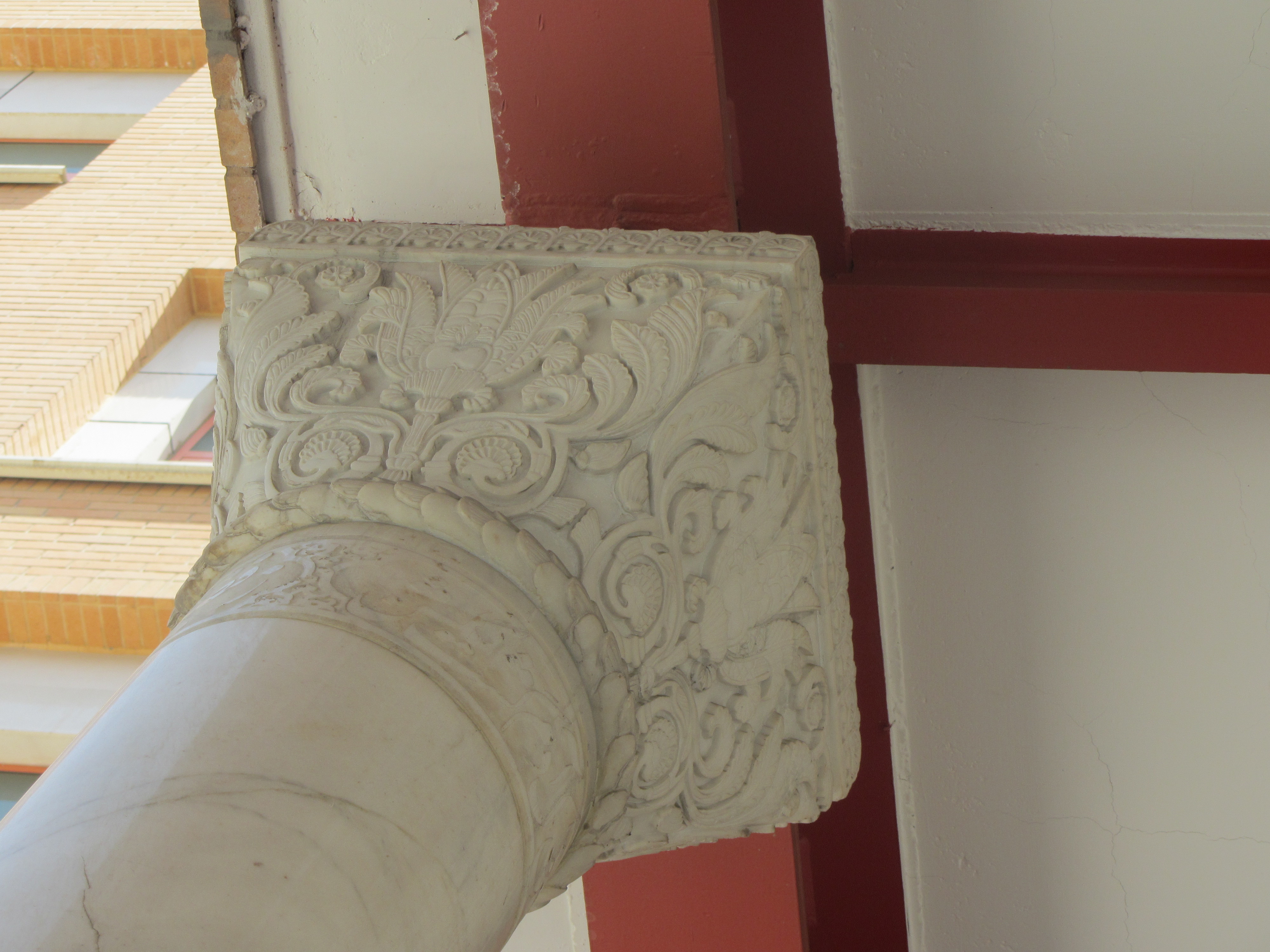 ستونهای نسبتا بزرگ و سرستونهای سنگی تزئین شده با سیاق سنتی نیز در دورتادور فضا کشیده شده و حس امنیت و خاطر جمعی از استحکام بنا را میرساند.